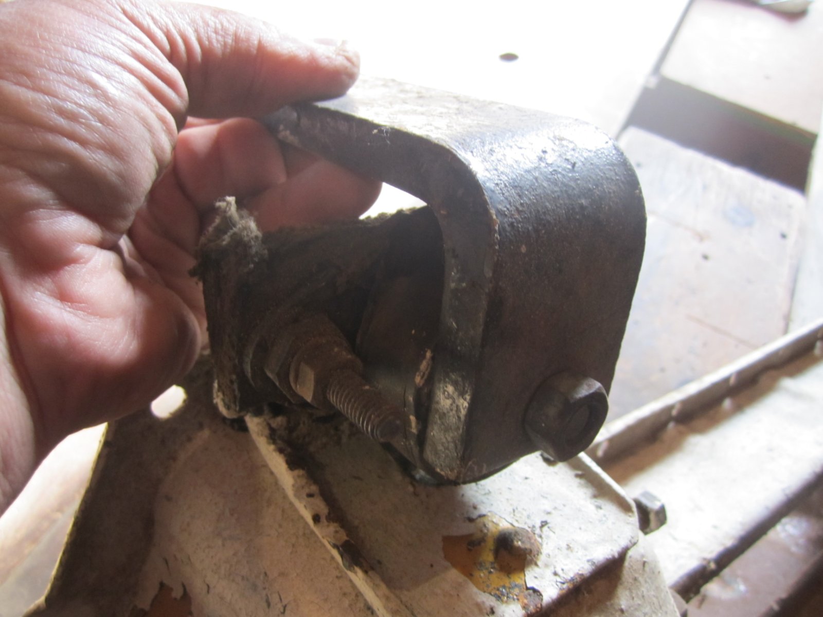 Here's some more pictures. This will get the "straight pan" fanatics squirming. Again the engine was mounted to an aluminum crankcase running an automatic transmission with a Model B crank shaft, so I'm guessing they weren't too concerned with pan misalignment. It appears that the arm may have been a single piece with the rubber bonded to the now two loose pieces of the bracket. Not sure where I'm going with this yet. Summer of 2020 project. Enjoy.