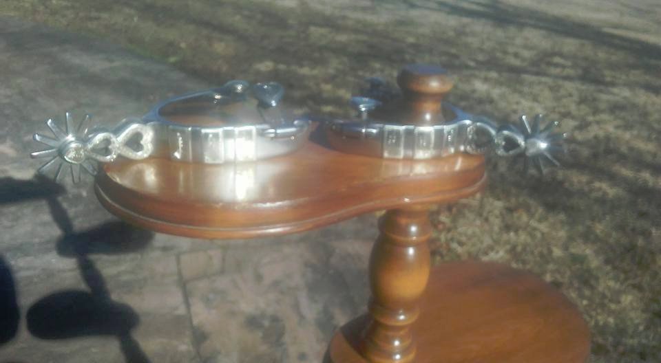 After we got rid of the cows at one time we had 11 head of riding horses.In all my years of riding [long ago],i can"t remember seeing spurs used except at the rodeo.Long long ago there was the Michigan State Championship Rodeo at Sparta,Mi but i doubt it still exist? A rodeo came to Midland and they had a bucking Ford and a young buck i knew at the time tried to ride a bull.Back to the spurs,Very Nice and it shows a lot of talent by the blacksmith!! Bud.