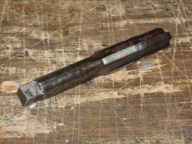 A combination reamer and tap for the Stevens Front Axle Reaming Fixture. Mixed in with a random lot of taps with a low Buy-It-Now price, good for the seller (and for me) that they actually listed the Stevens name in the description or it never would have come up in the search. The condition is better than what is shown in the photo and it cuts fine.