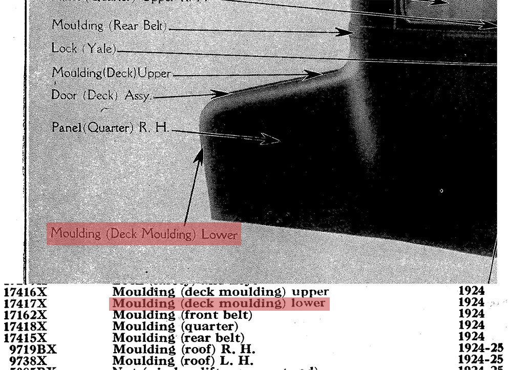I have a 24 Coupe that I inherited and restored. On my car the 2 moulding pieces weren’t exactly like the rest of the aluminum moulding.
