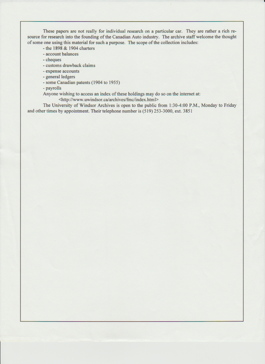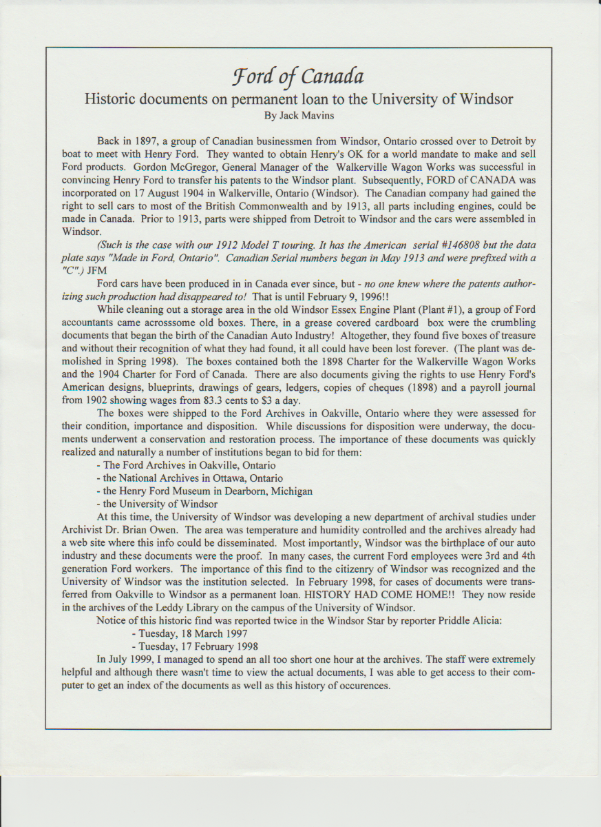 An article my Dad wrote in regards to Ford of Canada documents
