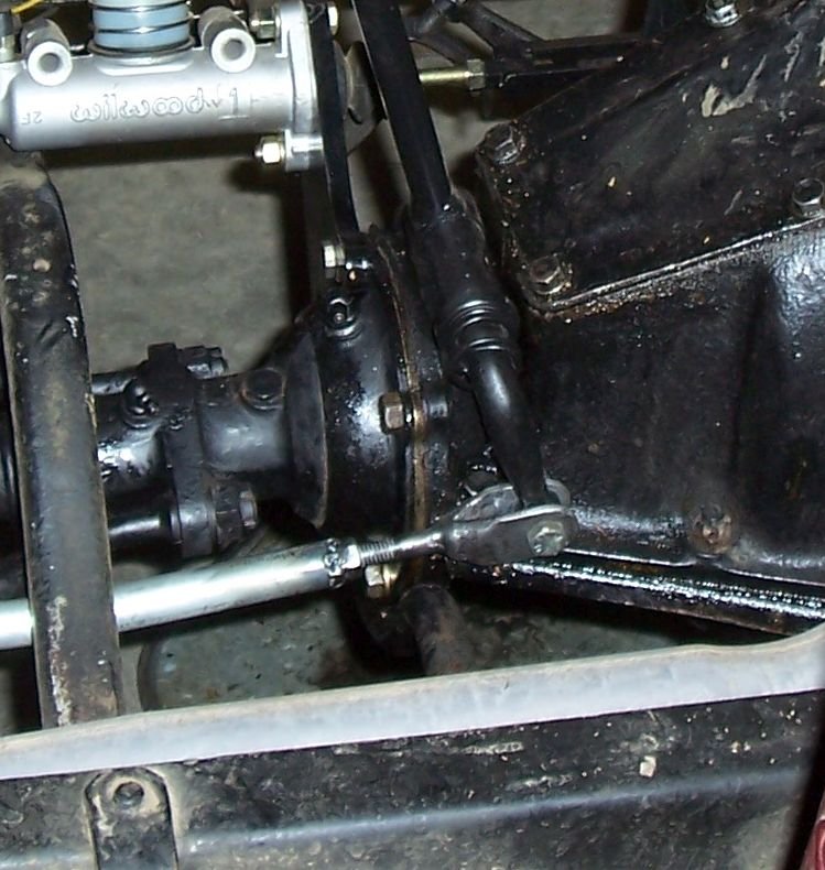 I have the rear axle unit, and I have the control lever and hardware. What's missing is the linkage. I'm guessing it would be like a brake rod without the rear dog leg — a 5/16" rod with turnbuckle(s). Is that right?