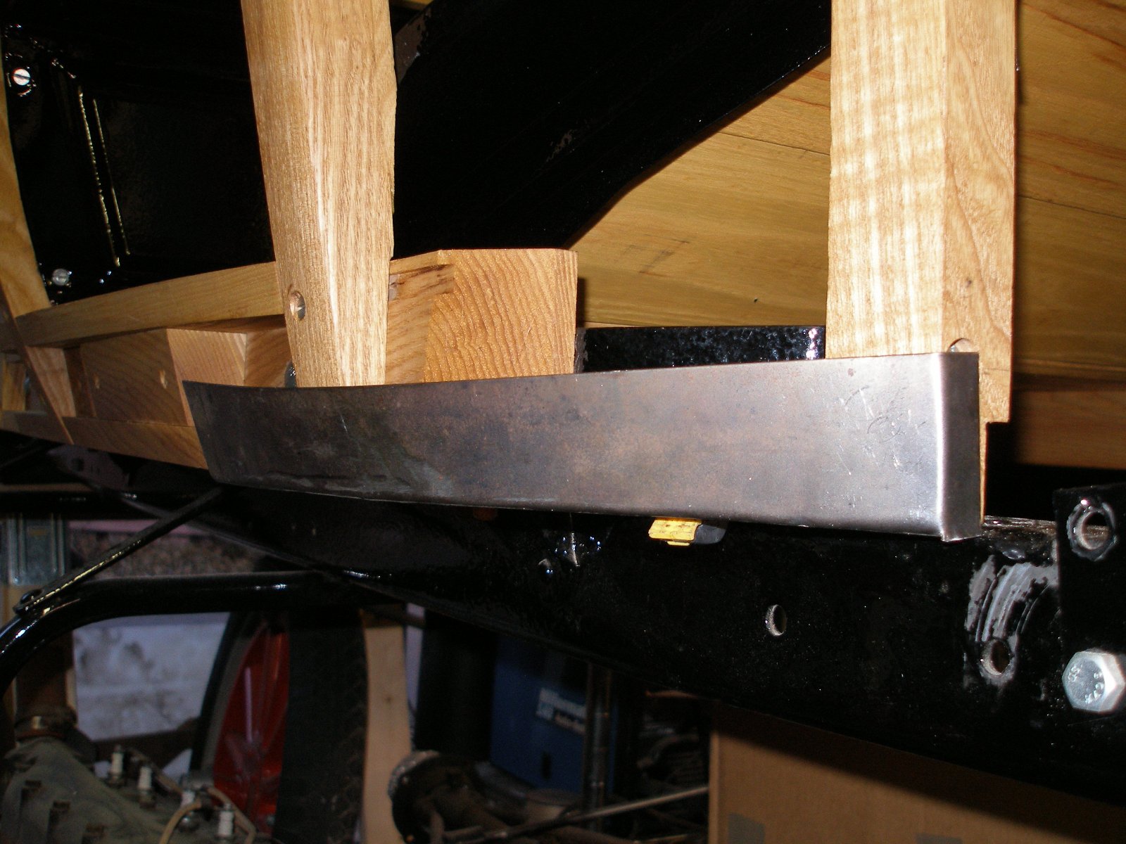There should be a gap between the sill support wood (the wood plank screwed to the face/side of the main beam) and the seat riser. The sill metal wraps around it and the body metal wraps around the seat riser. The two metal pieces fit tight against each other. That gap in the wood allows the two sheet metal pieces to meet together so that the "wraparound" of metal has some place to tuck.