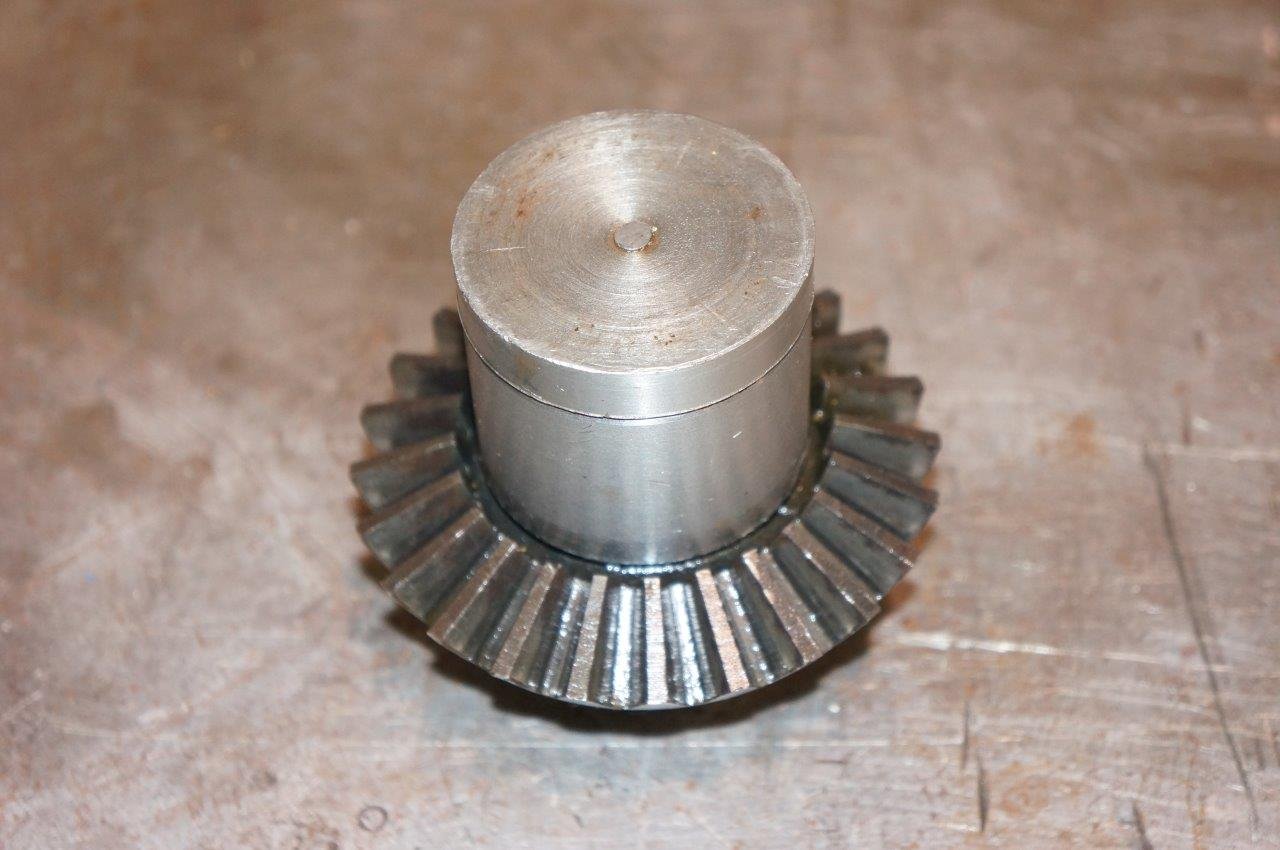 I drop the bed of the press right down and have the gear sitting on a cupped tool that supports the gear in the area between the teeth and the axle shaft and press down on the threaded end of the axle shaft (with a nut fitted to protect the thread). It can be quite tight, I’ve had some gears that needed 15 tonne before they budge. The shaft may flex a bit. You need to make sure the shaft is as close to vertical as you can get. I always wear a face shield for this, it’s a bit outside my comfort zone.
