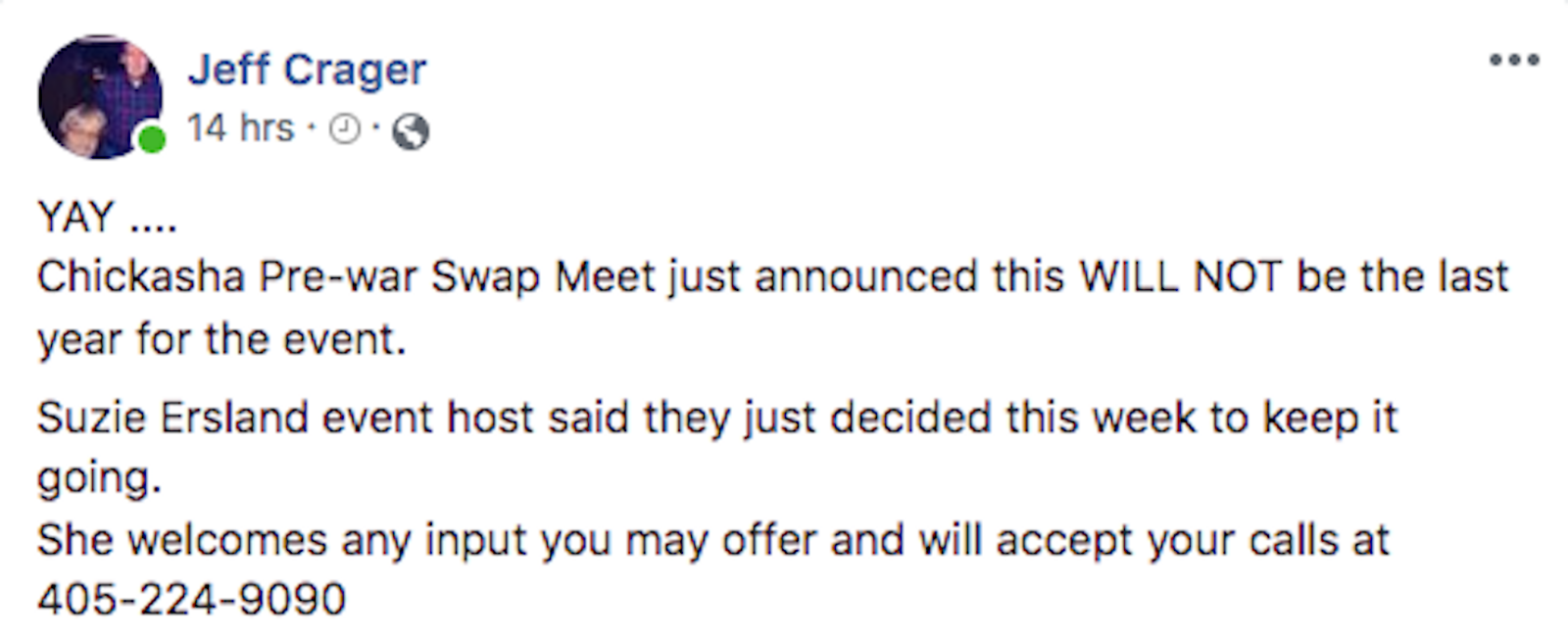 Great news, thanks to the Ersland family for all there work over the years to keep this great event going.