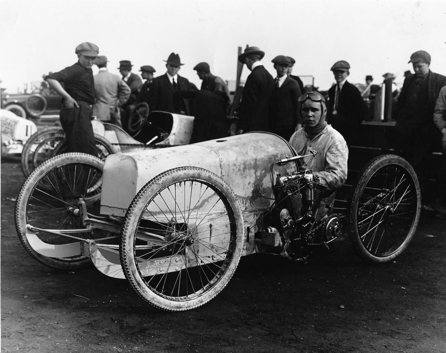 Description Walter Gossman of Los Angeles poses in his cycle car, the Red Devil, at the Tacoma Speedway. Cycle racers, primarily from California, were in Tacoma in September of 1914 for the first "junior race" to be held north of California. Gossman was participating in his first race ever. He had designed and built the unique looking Devil. Outside of practices and speed trials, Tacomans were never able to see it race. The actual races were rained out. Speedway-061 (Tacoma Tribune 9/13/1914, pg 2B)