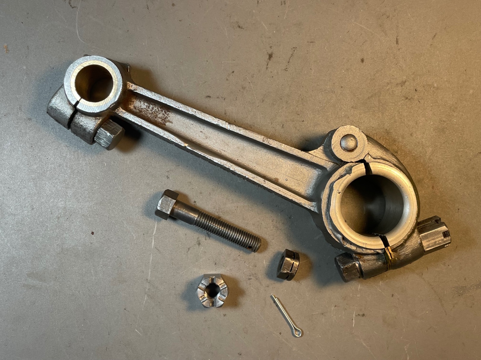 The photo shows a rod with the new bolt and nut:
