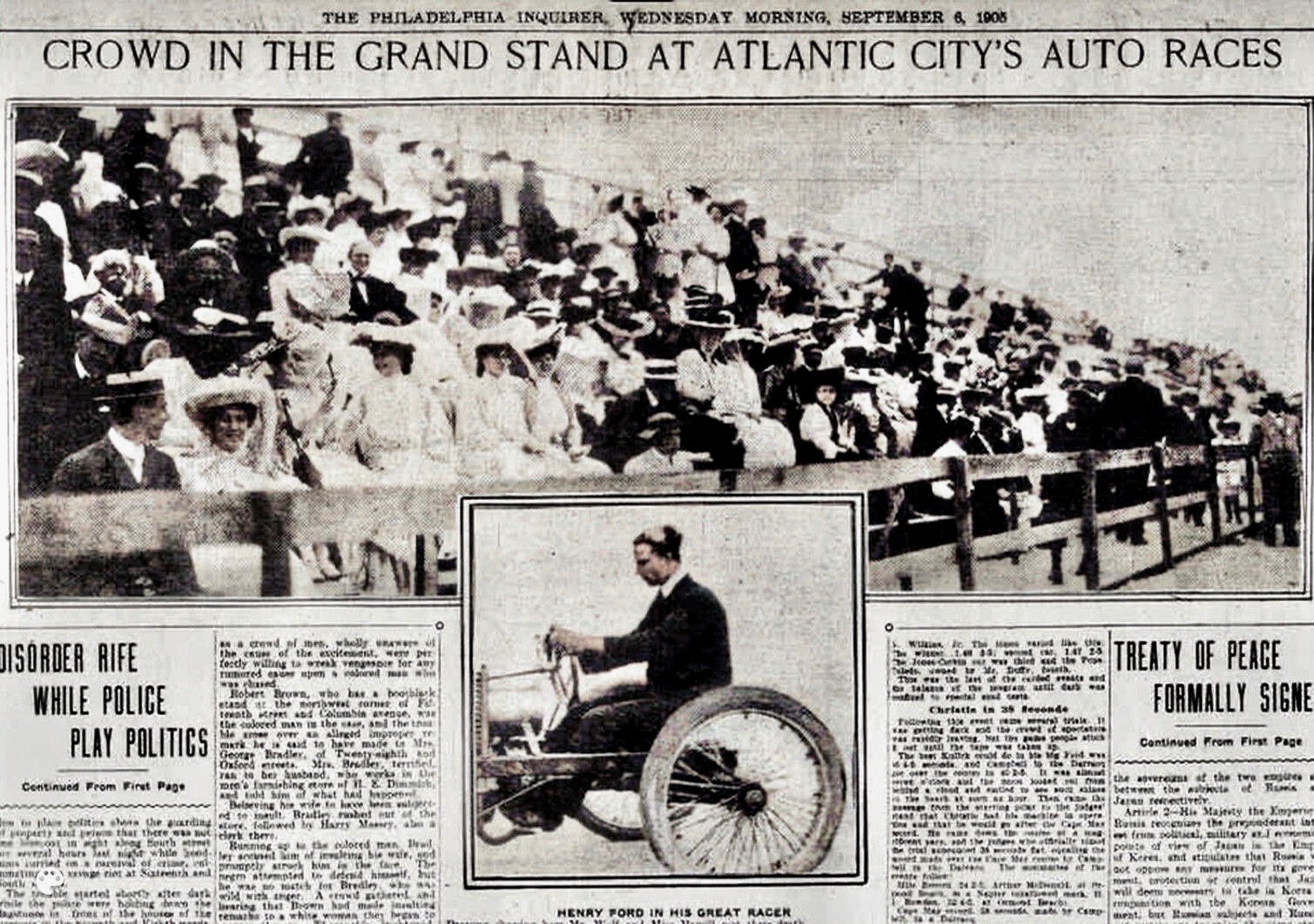 Initially Ford hoped the trophy race would be sanctioned at the upcoming New Jersey Beach Races, held at the end of August (Cape May, New Jersey) and first week of September (Ventnor Beach, Atlantic City, New Jersey). The Dewar Trophy race wasn't sanctioned, but Ford, as well as Walter Christie with his Christie Special, Louis Chevrolet driving a Fiat, and A. L. Anderson driving a Darracq did attend the beach races. During the second race at Ventnor Beach (Atlantic City), Ford beat the Darracq in the competition mile (the same race the Dewar Trophy was sanctioned for), setting a new world's record. However, the record was disallowed by the racing committee because the Ford six cylinder racer crossed the start line ahead of the Darracq (these were rolling start races, with the cars starting out 1/2 to 1 mile ahead of the start line, in order to be at or near full speed when reaching the mile start). While the record was not allowed, it showed that Ford with his six cylinder racer was capable of beating the time set by Ross earlier that year at Ormond: