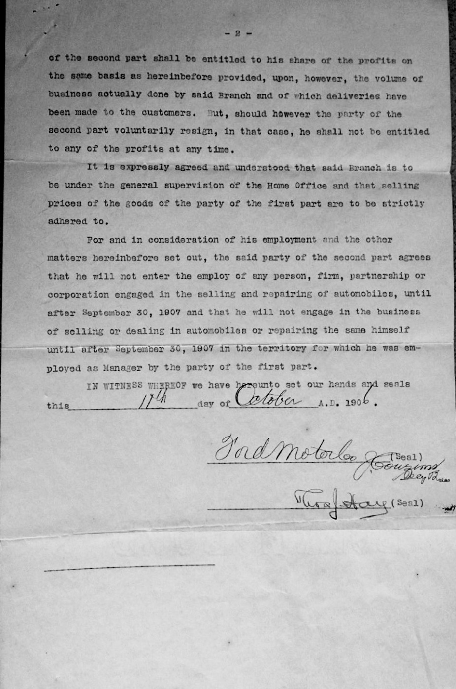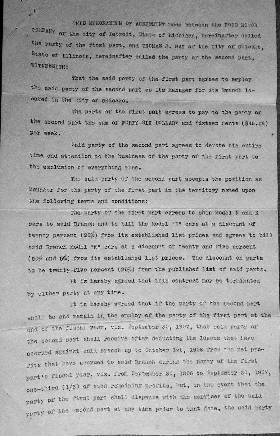 Below, copy of FY 1907 Branch Manager contract, courtesy of The Henry Ford, all rights apply: