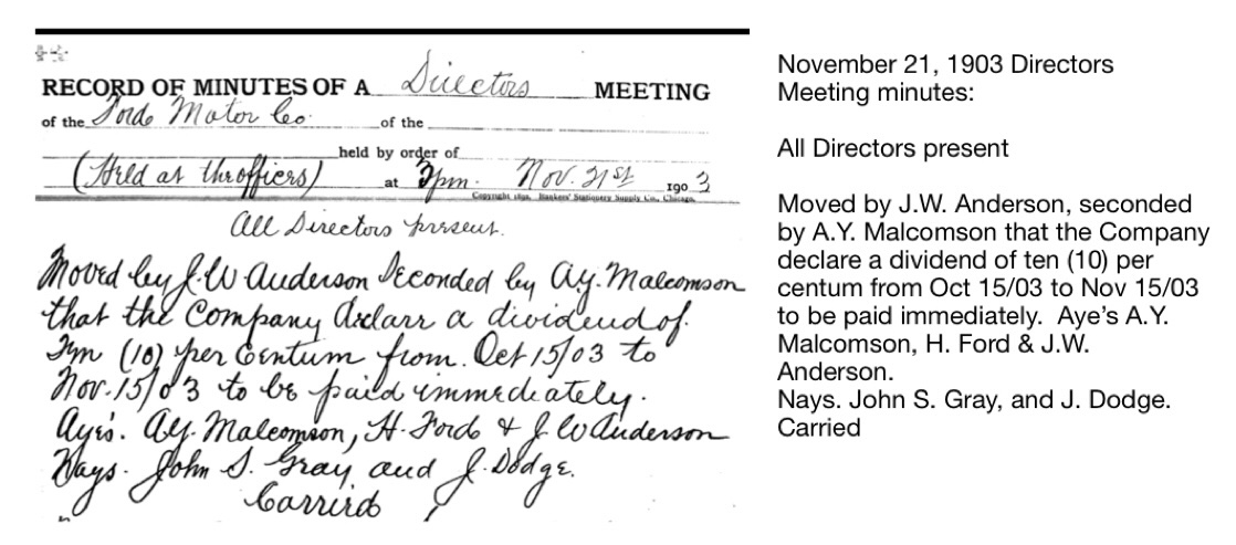 Re: Early Ford Motor Co. Board of Directors, J. Dodge and A.Y. Malcomson