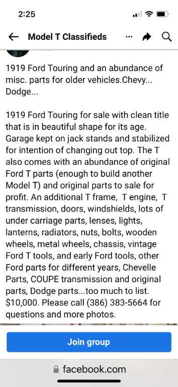 Re: For Sale: 1919 T and parts - no affiliation