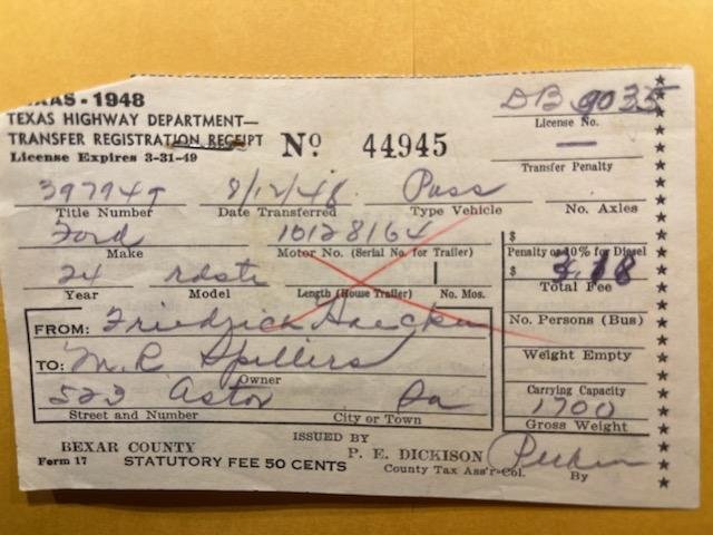 It is indeed a very nice car. I will post copies of some of the early paperwork such as license receipts, original bill of sale, repair bills, etc., when the family provides them to me.