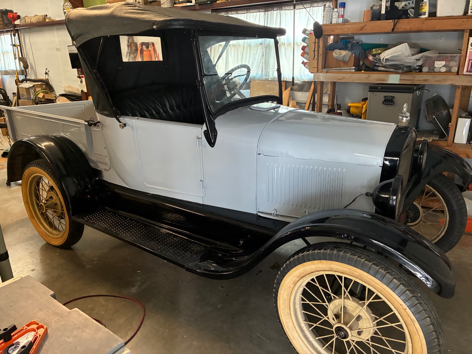 26/27 Roadster Pickup. This is a car that I put together out of an original roadster and added a pickup bed. The engine was rebuilt by Al Montgomery several years ago. It has a Ruckstell rear end with Stoltz bearings and Rocky Mtn brakes. 6 volt system with new starter/generator/cutout and new Kevlar bands. Runs on mag. Classtique upholstery and top with roll up rear window. 5 wire wheels, tires are just for rolling, it’ll need new ones. TX title. Email for more pictures/info. $6,500
