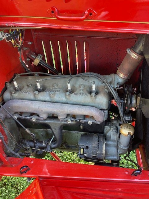 Engine is 1919-1921 0.030 bore, H.C. pistons, Babbitt, Chevy valves, Kevlar, Jackrabbit, B.B. 4th Main. Stultz Dist. (NO MAG) Alt. Rocky mountain