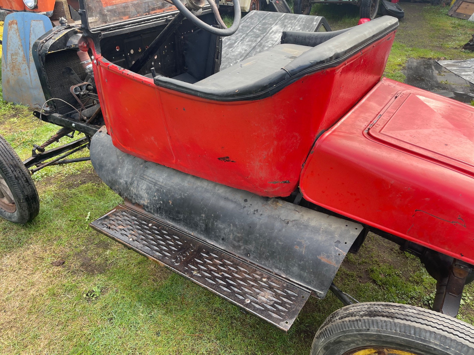 Needs tubes for the tires, they are ancient. The rear end is a big drum from a later model T. Does have the hood and door as well, just not in the picture.