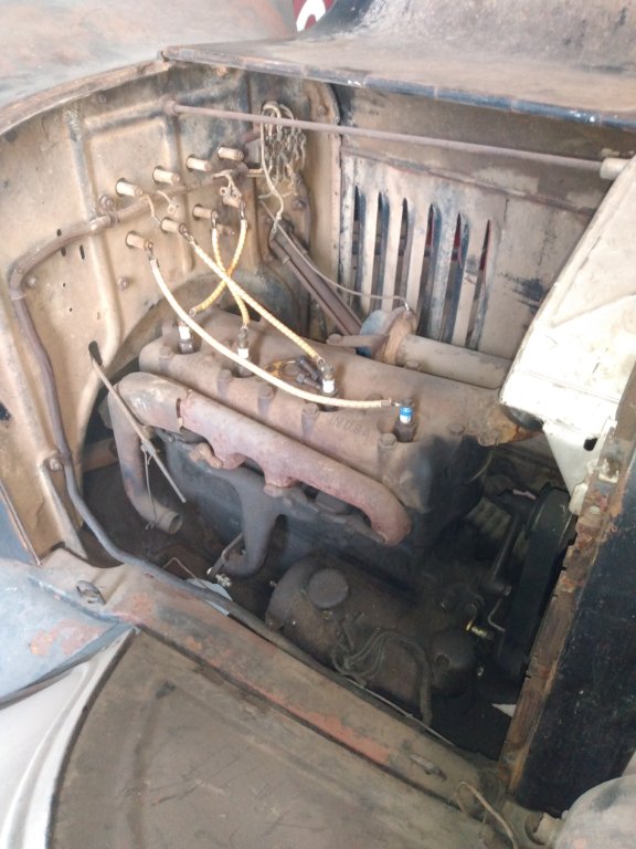 You need to be a member to post in cars for sale. For the administrator - I'm only the poster, the boss man's member no. is #50232. If you don't approve of this that's fine. 25 touring that is a rather complete car. Has all top irons, missing the front piece wood.seat springs ,even little end caps on wood. Has wire wheels on now. Started it probably a year ago, back wheels were turning. Fender aren't worth a hoot, but the body is very nice. Lots of grease on the girl, meaning she hasn't been taken apart. Even has engine splash pans. Located in Southern Indiana. 4000.00 . Good candidate for restoration. More pictures upon request. ctleonard64@gmail.com