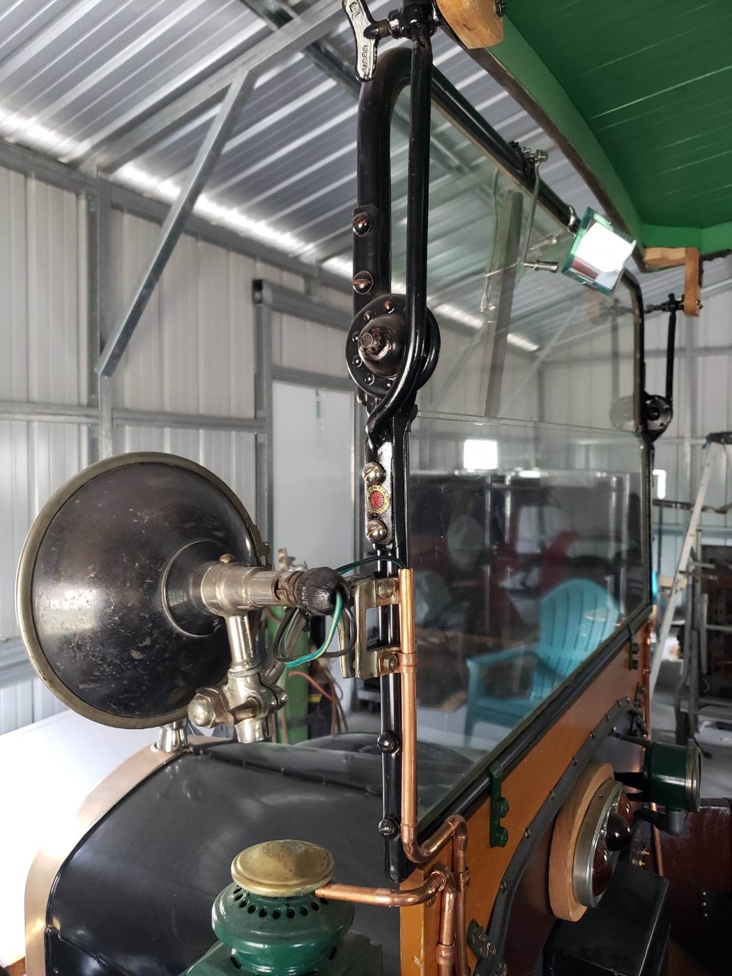 Restored original Parry Manufacturing co Body, professionally rebuilt motor and transmission, new bushings in the front axle. 5 lugs heavy duty perlman wheels, new tires, tubes, and flaps. New radiator and water pump that keeps it cool for long parades, and rides. Dogbone motometer, mag oil line to front of motor. Starter motor added at rebuild. Restored NH straight through carbonator. Loads of accessories