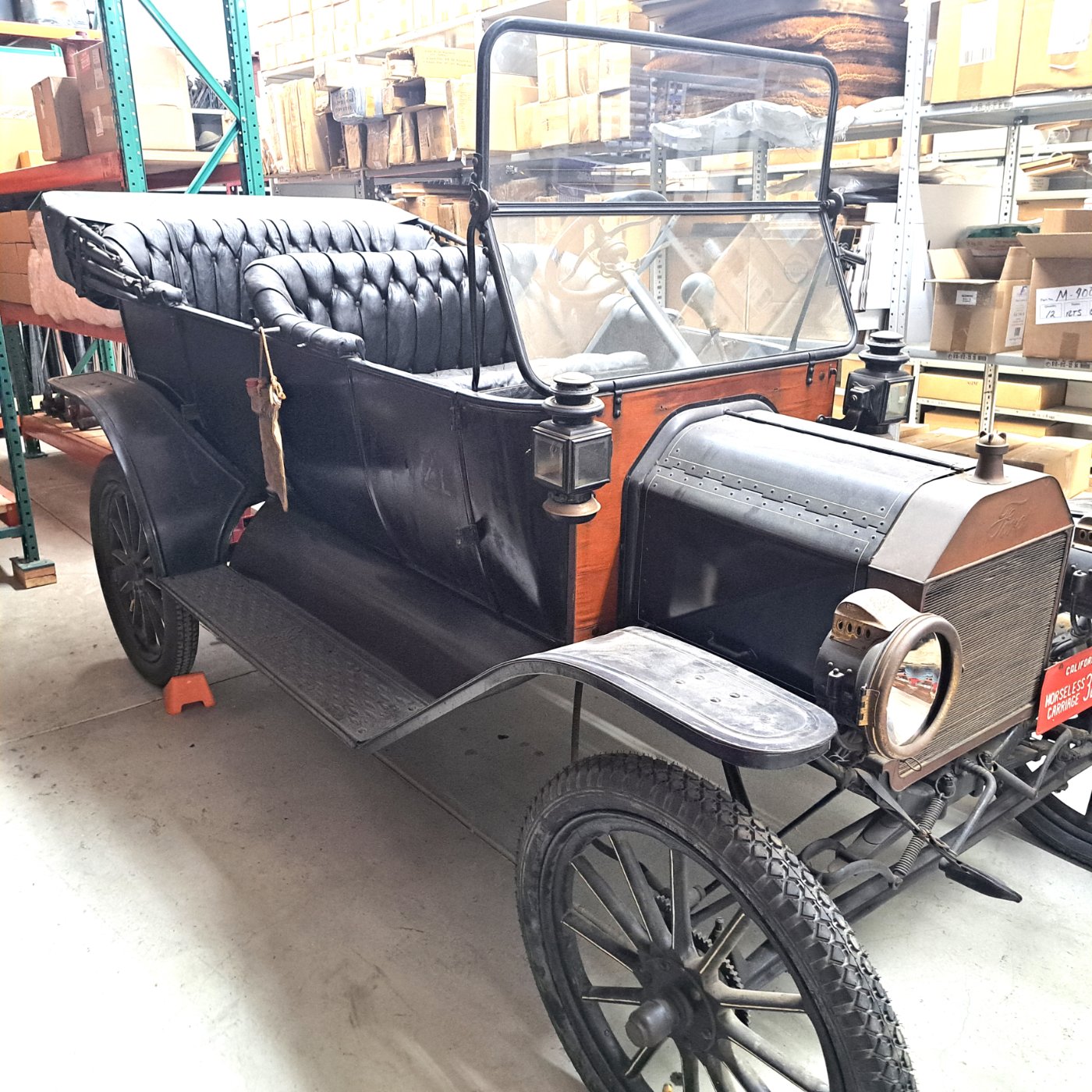 Very nice low mileage May 1913 Model T Touring car. In excellent unrestored condition with a few period correct accessory upgrades (electric headlamp conversion and shock absorbers). New Wards Riverside tires and tubes installed on the front as the tires that came with the car had rotted away. Odometer states 3,600 miles. Based upon a visual inspection, I believe this to be correct. I have never seen a better example. This would be a fine addition to any collection. California title in hand.