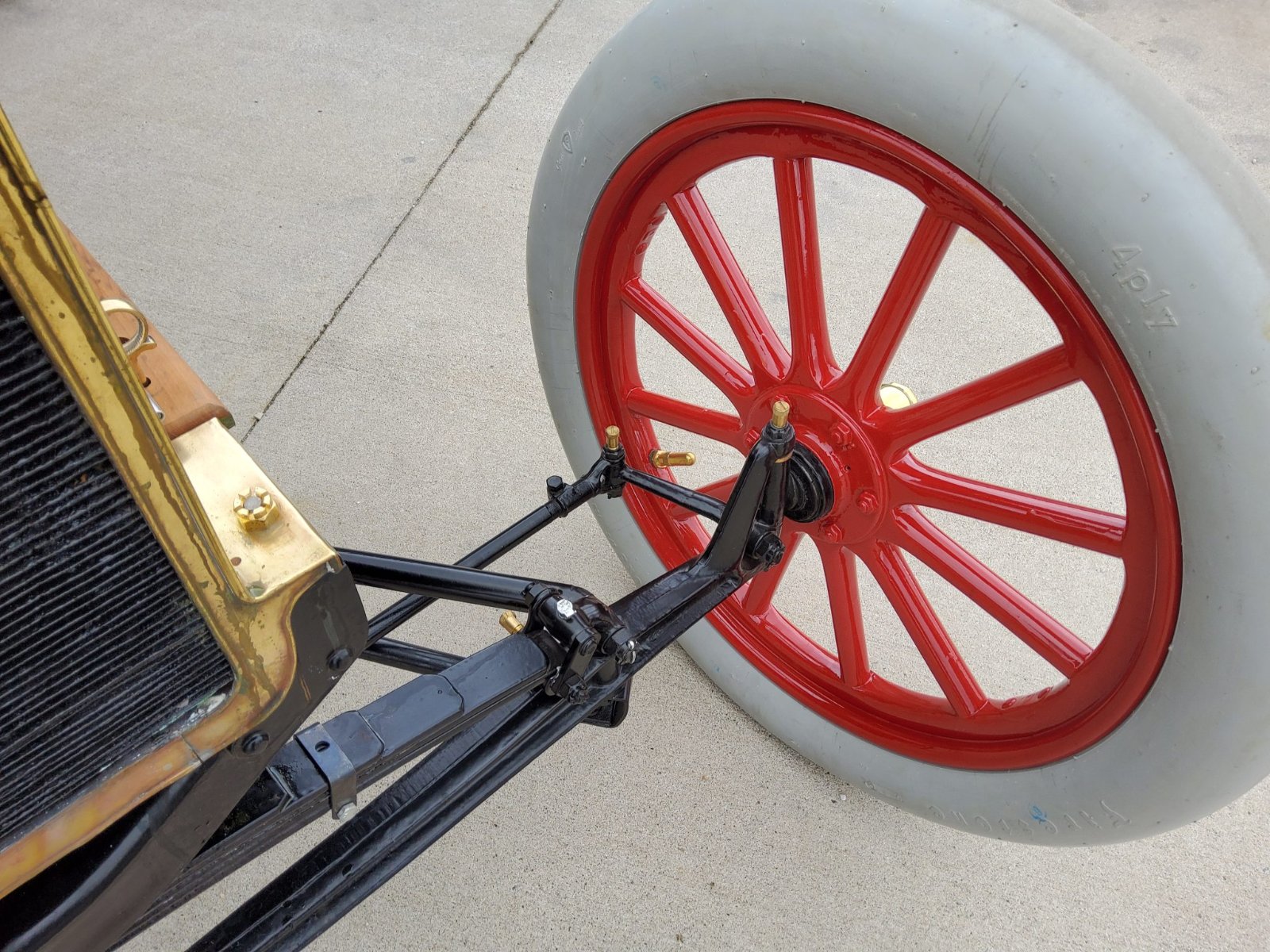 The radiator is in good condition and there is very little wear on the gray Firestone balloon tires. The car is also equipped with an accessory "double wishbone" typically used on speedsters. The car is nearly museum quality.