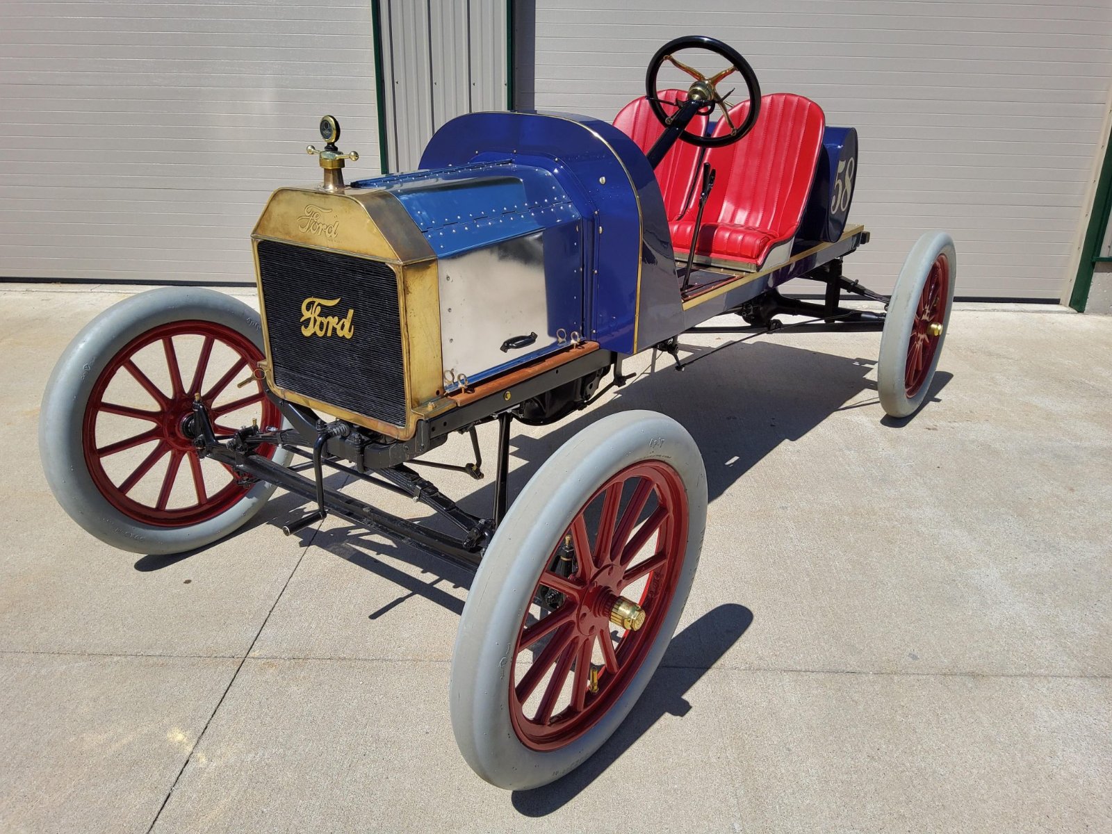 The bodywork has been refinished in blue base and clear coats with polished hood panels. A Ford brass radiator at the front of the car features a Boyce Motometer. The floor is constructed with using wood with brass trim, and an electric STOP light is affixed at the rear. The fuel tank is excellent with the #58 decals on the sides and the battery box his mounted aft of the driver resembling a tool box. It has a 6 volt battery in excellent shape. The car is located in Dallas, TX. Text me for more photos or information. 214-770-5640