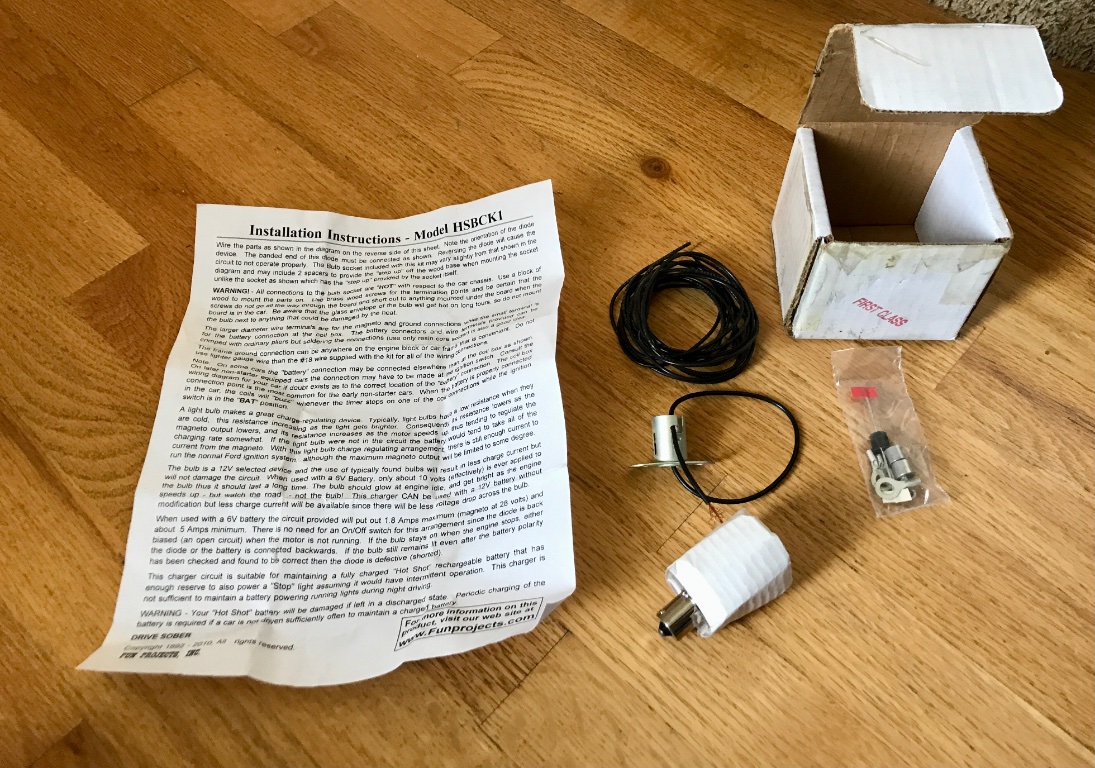 Here is an original Fun Projects magneto battery charger kit. It was purchased many years ago and never used. Includes directions and everything in picture. Wire, socket, bulb, diode and hardware. 40.00 includes shipping.