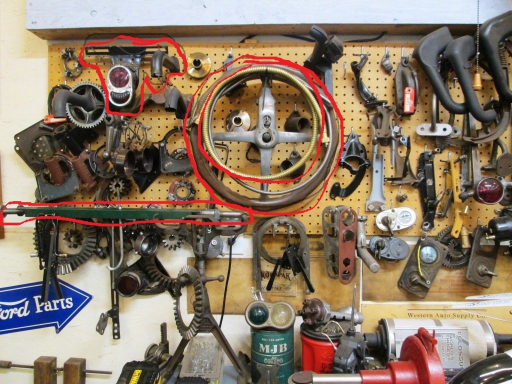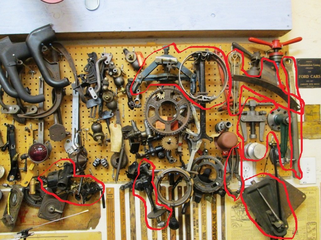 Here's a couple photos of ONE of my walls with Model T goodies - drop me a note regarding anything that you might like to have EXCEPT the Stevens, Ford wrenches & tools - I'm negotiable for the most part ! Drop me a note through the Forum, please unless you already have my email.