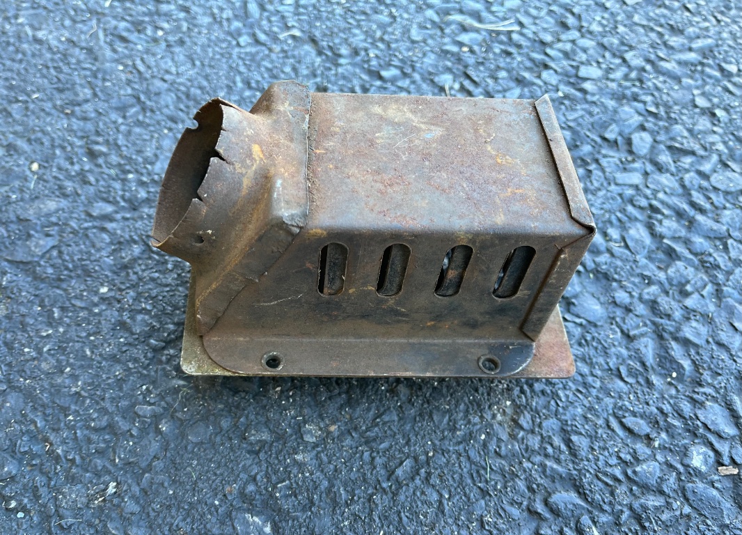 Neat little floor vent for an exhaust manifold heater. The vent won’t open and close and I didn’t want to force it. I’ll let the new owner do that. Measures about 3.5” x 5.25”.