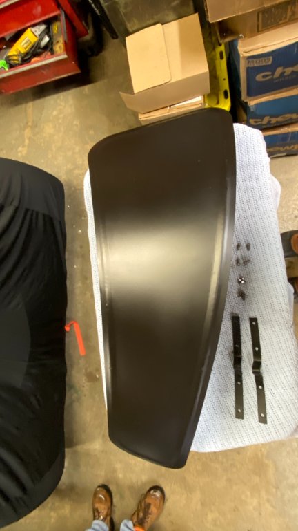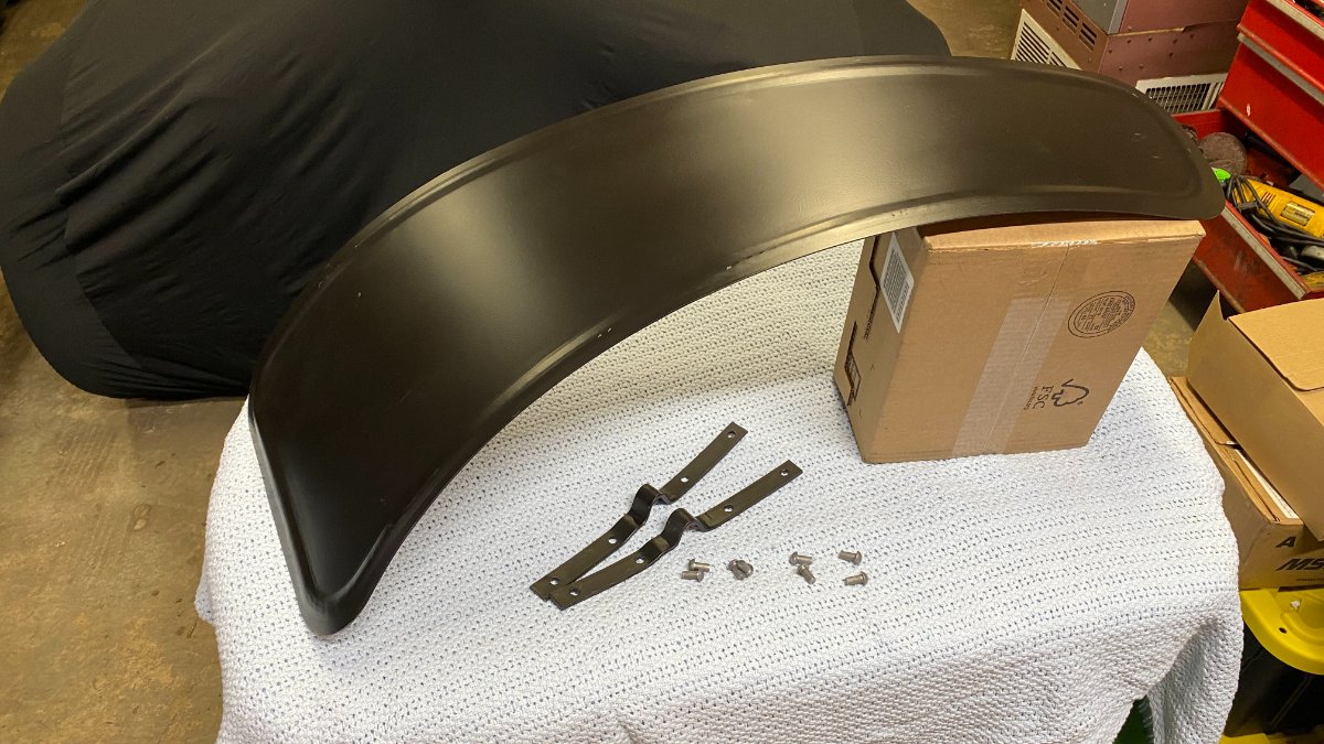 I have made them from 22 gauge cold rolled steel, formed to shape, with the correct rolled bead. Price includes fender brackets with clips and rivets. $750.
