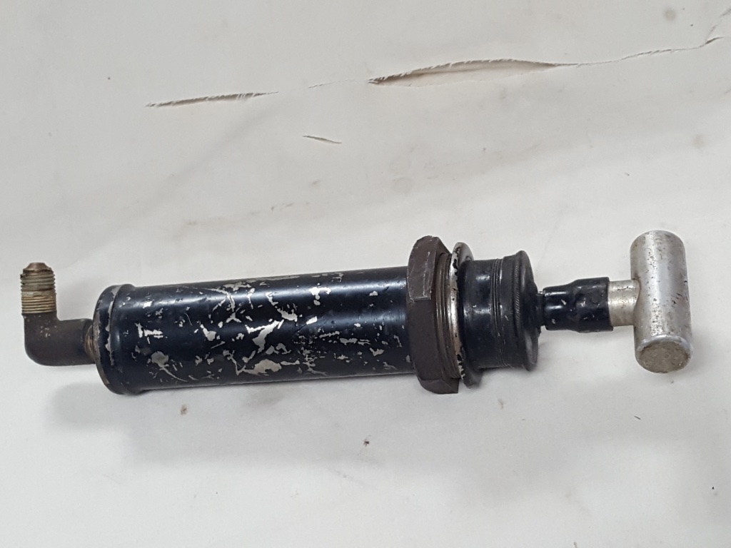 Hand air pump with T handle for pressurizing a gasoline tank, complete with large nut for instrument panel mounting, works great and has built in check valve, included is a working pressure gauge $235 for both, domestic shipping $15.
