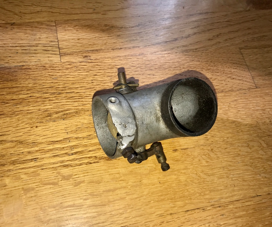 Early Winfield choke assembly. Complete with flapper and brass lever. Needs repair of crack on collar, made of aluminum so easy creative welding repair. Hard to find part. 75.00 shipped.
