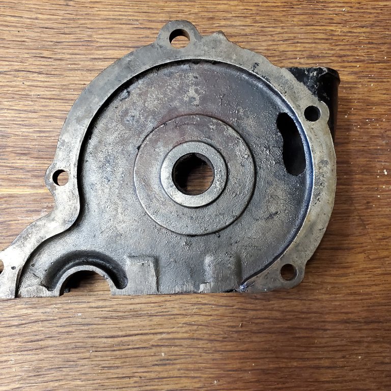 So, you are looking for a 1912 timing gear cover without the built-in oil spout? A standard cover would have a spout, the funky one wouldn't.