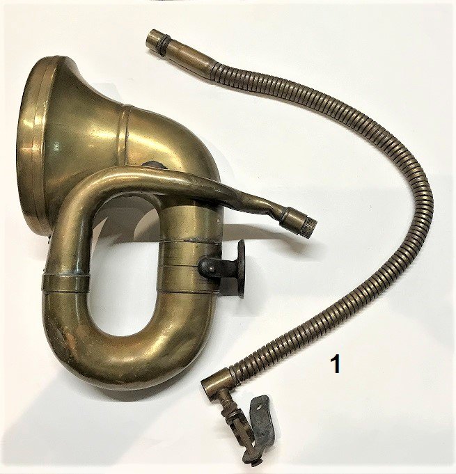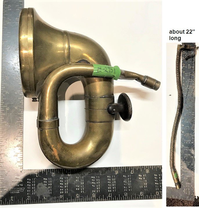 1 Nonpareil Single Twist Brass Horn as used on Model T Fords from 1913-14. Steel Oval Mounting Bracket. Hose included $80 + shipping