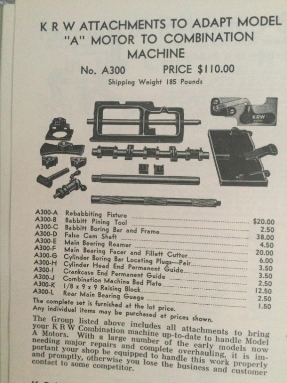 2) all the additional tooling for pouring and align boring Model A main bearings including: