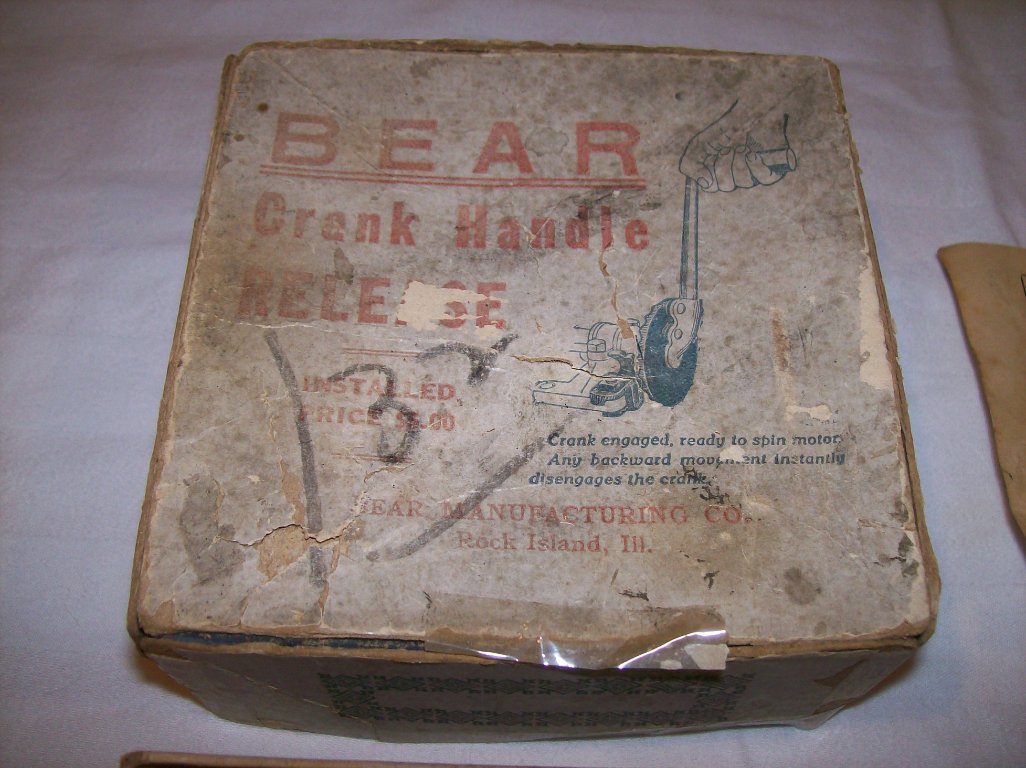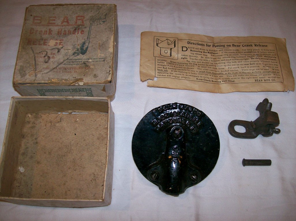 I have for sale a BEAR MFG COMPANY anti kick back for the crank on an early Model T. The pictures says it all. It is NOS but the box is fragile. The price is $160 and that includes shipping to the lower 48 states. Shipping anyplace else will need to be adjusted. Just PM or Email me.