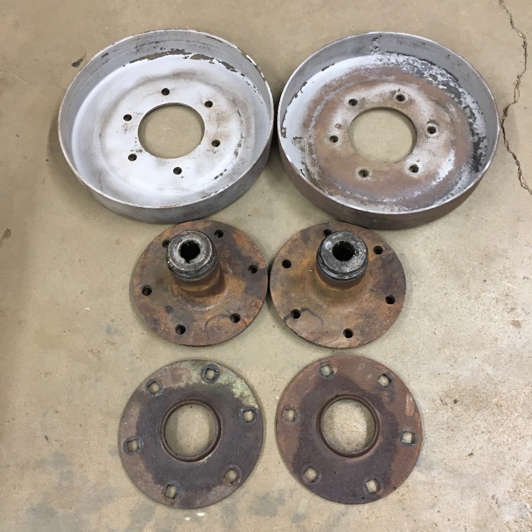 Here are a pair of TT rear hubs with excellent hubcap threads and nice flat plates. One of the drums is excellent quality and real smooth inside with the exception of a smooth score from rivets which is pretty normal to find on these. The other drum has some heavy pitting and a small area of rust thru. It is easily repairable if you have the skills & tools to do a proper job. This drum is basically “included” with the rest of the parts for the price. Please do not post here or pm. Thank you.