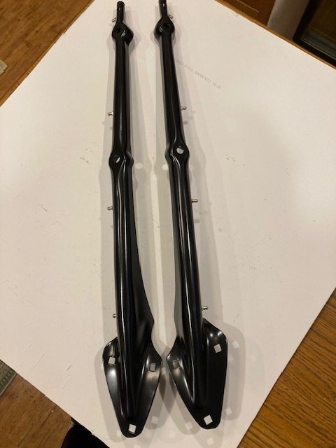 Excellent quality reproduction windshield stanchions. Never installed. $125.00+$20.00 shipping. Check or money order. Email me through this site.