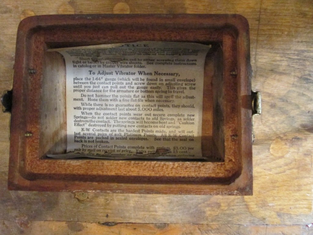 This might be a NOS KW Master Vibrator - has original instructions still in the lid. Solid brass mounting brackets attached. I'm asking $150 + the ride. Drop me a note through the forum, please.