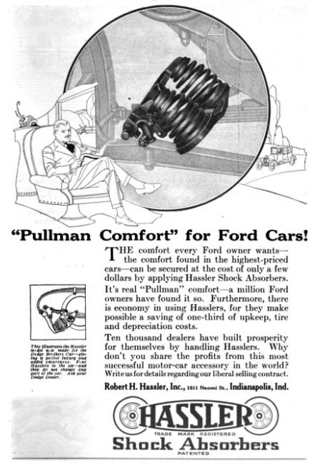 I have the FORD literature for the Hassler "beehive" and "pancake" styles. Did a search and found this AD with and small inset saying "contact your Dodge Dealer"Mark Gregush wrote: ↑Wed Feb 22, 2023 12:17 amDoes the information show Hassler spring for Dodge Brothers, maybe on a different page?namdc3 wrote: ↑Tue Feb 21, 2023 6:08 pmThanks, Steve. I have a few with hints of color, but it’s hard telling what happened over the years. I’d like to get together enough stamped springs to characterize what is what from dimensional and spring rate perspectives - the idea being that that data could then be applied to non-stamped springs.