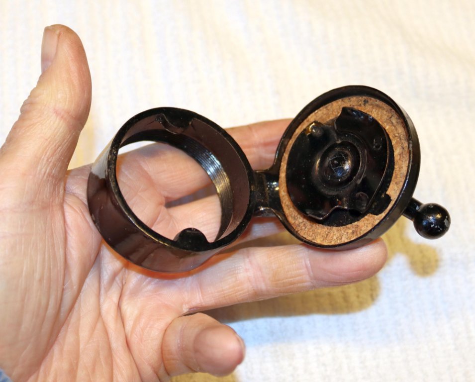 This is a wonderful flip top, quick release gas cap, with two inch diameter female threads. This would be for a Model T Era car with a external gas tank, but could be used on a speedster gas tank. The box has come apart along some of the folds which can be taped together for display attachment=1]Neva-Lost cap 3.jpg[/attachment]