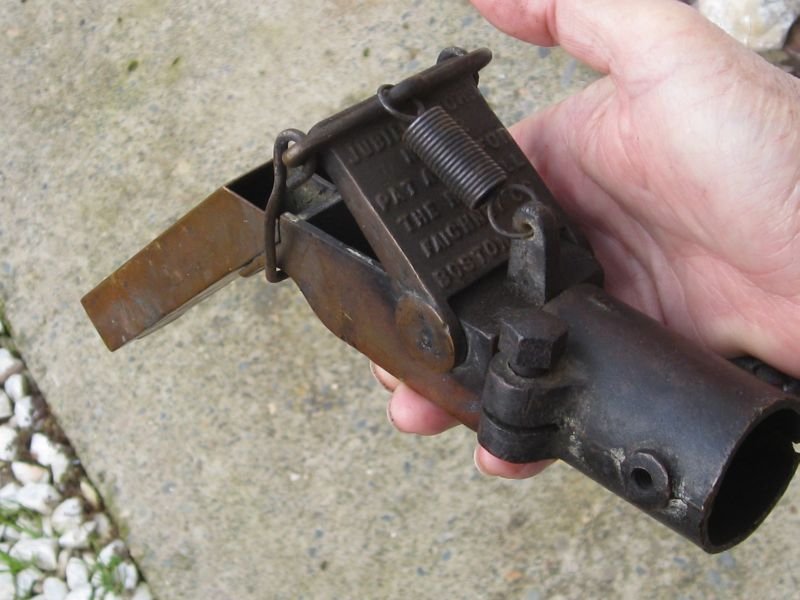 Marked Jubilee Horn # 32 by The Randall Faichney Co. Boston USA Patent applied for. Clamps onto the tailpipe. When the flap is pulled down by a cable connected to the cut out pedal it forces the exhaust across the square tubes, kind of like blowing across the top of a pop bottle. It's in nice used condition and will polish up nicely The old ad I've included is for a very similar horn (Jericho Horn)that I think may be made by the same company but at a later date.