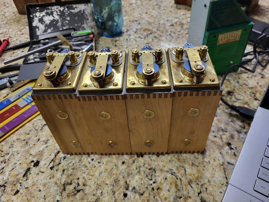 Set of four very nice brass top coils that appear to be completely new. The wood is beautiful; it looks furniture-grade. Checked on ECCT. See photos and ECCT results below.