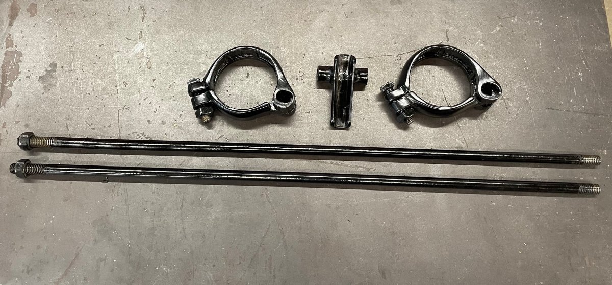 This is a complete, matched setup. The parts are powder-coated except for the nuts and bolts. Very nice, very hard to find. $300 plus actual shipping, or I can bring it to Tulare.