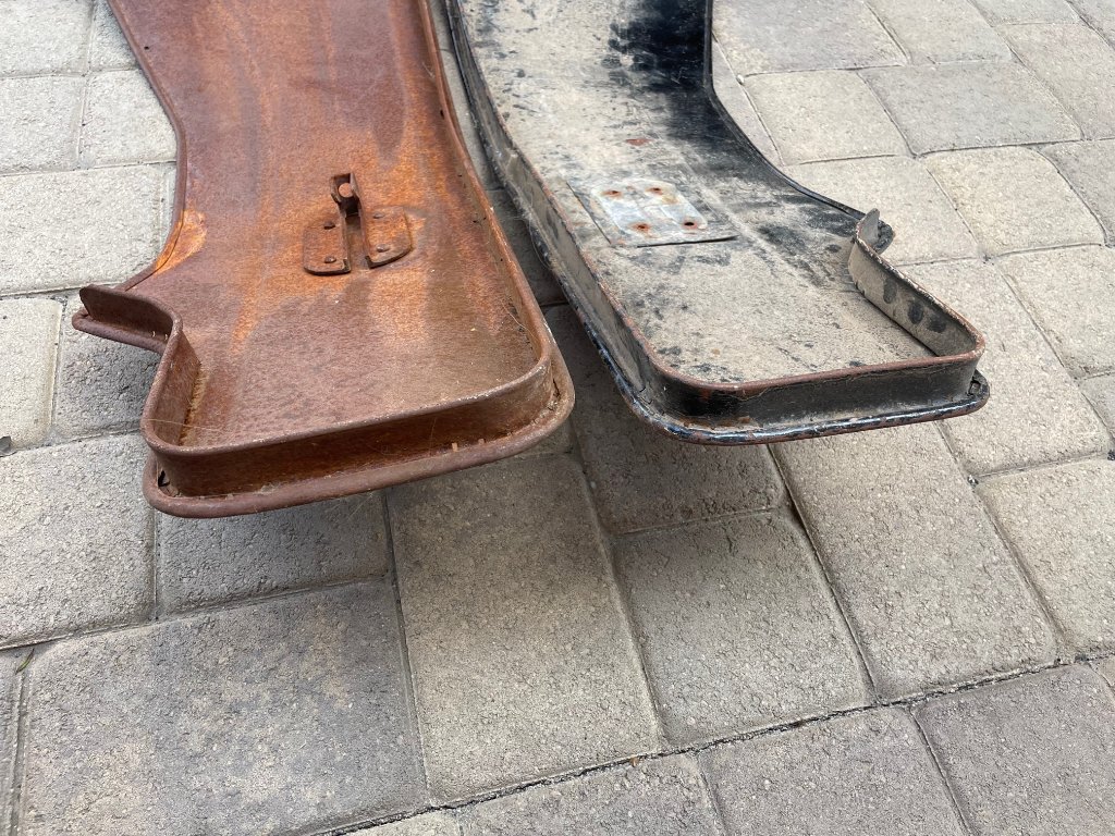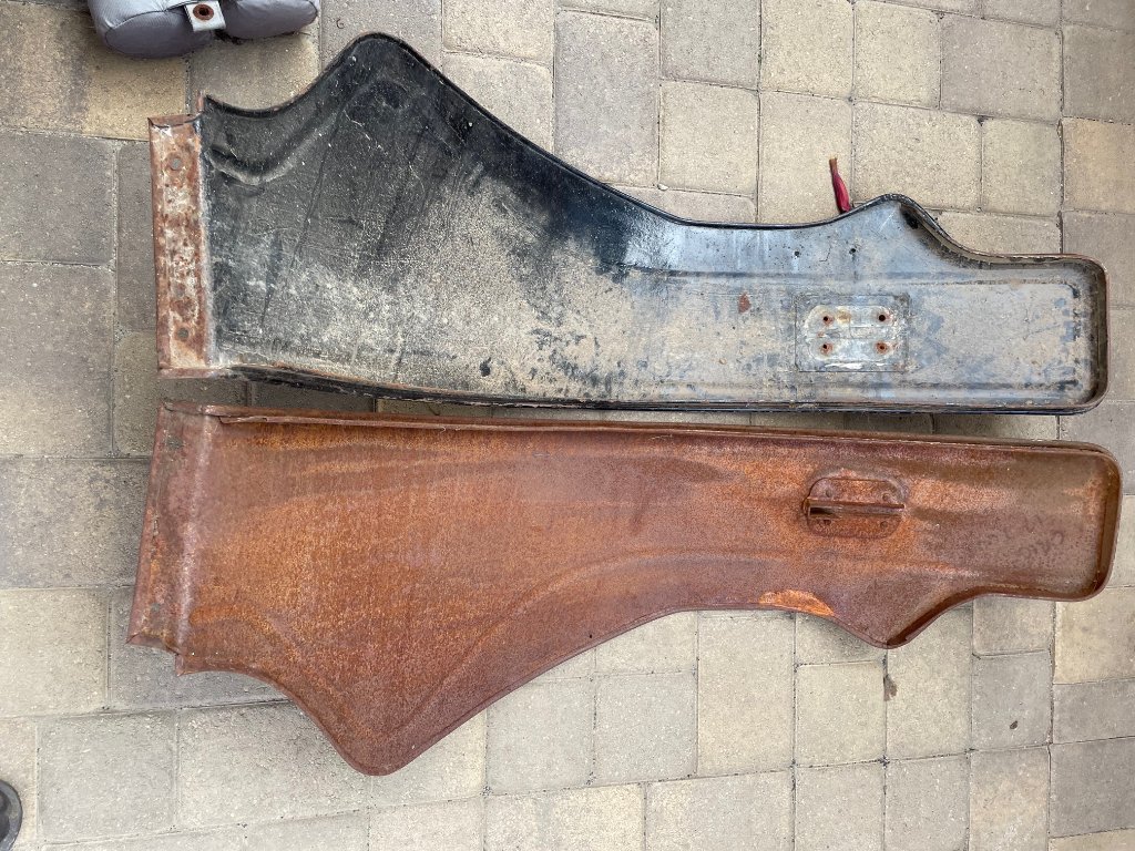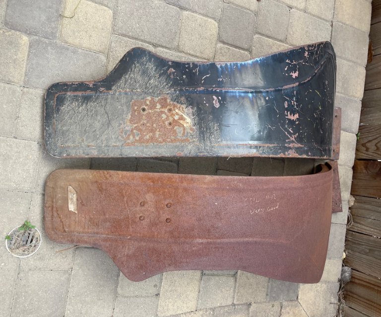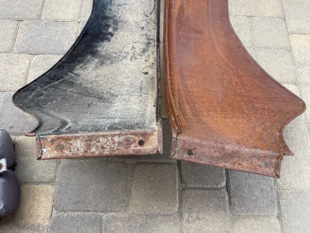 Pair of rear fenders for a 1911-12. Overall these are pretty solid; minor metal work to restore but not bad. The original fenders have a slightly different curve than repops, so they fit much better. I can deliver these to Tulare, or they can be picked up, but I can't ship them. $550 / pair.