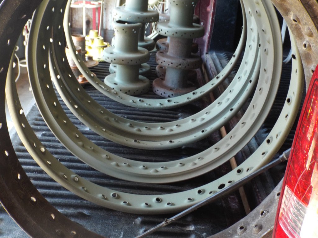 A good situation with these wheels is that the new owner would be able to paint the wheels the exact color he/she would want. Plus if one wanted to go with stainless spokes , perfect timing.