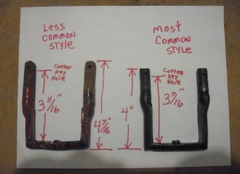 The one in the middle and the one on the left are two variations of the exact same thing. Either one will work fine for you. The measurement from the inside top (part that goes against the top of the crossmember) to the cotter pin hole is the only measurement that matters.