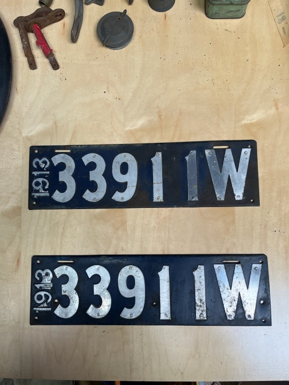 Nice pair of 1913 Wisconsin license plates. $300.00 plus shipping. Kdmks AT att.net.