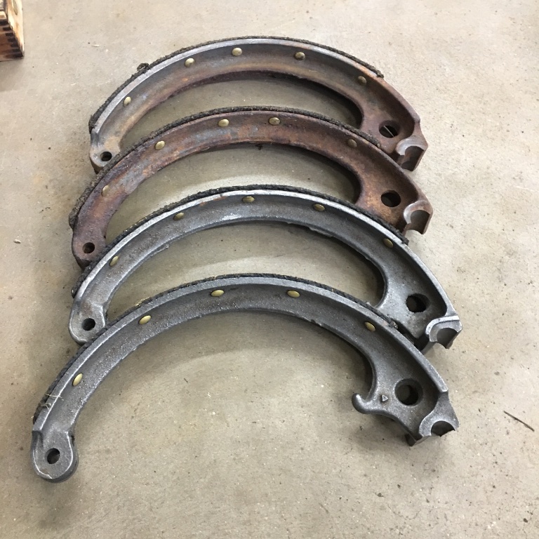 Re: 4/19, new price & FREE SHIPPING; Complete set of 4 very good TT brake shoes w/ decent lining.