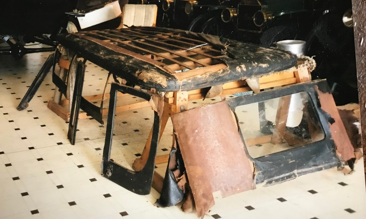 Was helping Craig Beek organize some parts etc and came across some photos of a top he has (no longer on the Touring ). Did a bit of bit surfing the web and found some info about it. The photo's of the top were taken several years ago and the top is currently stored up in the rafters of his museum. Will pull it down and get some better photo's for serious inquiries. Craig indicted it was for a 1915 Touring with the rear brackets as shown in the photo and could fit up to 1920. I'm posting it for Craig was $1000 now $925+ shipping or pick up