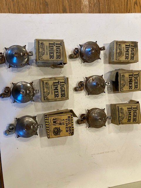 Five Tiger Timers and one Bull Dog Timer with their boxes. All of the timers have surface rust and the boxes need gluing. $175.00+$22.00 usps shipping. Check or money order. Email me though this site if you have any questions or interest.
