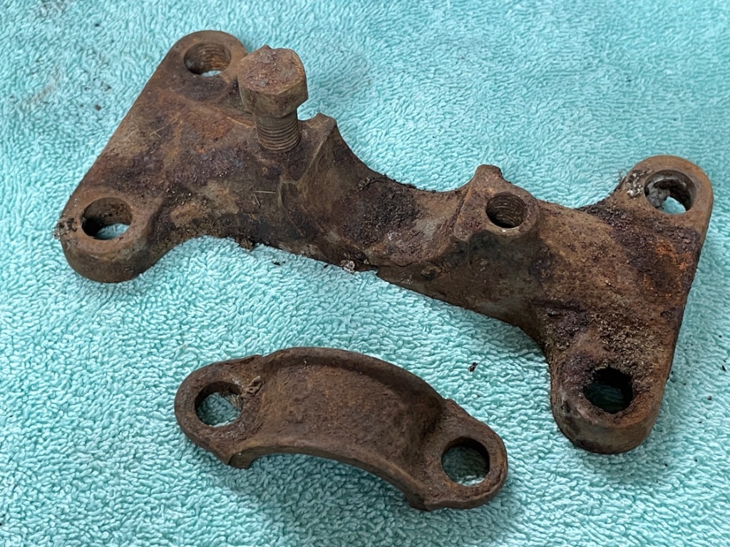 Early front motor mount with cap, just dirty with very light rust. includes domestic postage.